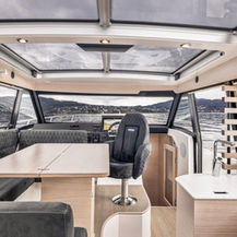 Skilsø 35 Panorama çok geniş bir yaşam alanına sahiptir. Kokpit ve salondan her tarafın güzel bir manzarası vardır. Sürgülü kapılar ve elektrikli pencereler kolayca açılarak geniş bir alan yaratır. Elektrikle çalışan güneşlik ve sunroof da açtığınızda, kısa sürede tamamen açık bir gemiye sahip olursunuz. Ayrıca, dümen pozisyonunun yanındaki büyük sürgülü kapı, korunaklı geçişlere erişim sağlar. Bu, Skilsø 35'i 1 kişiyle kolayca kullanmanızı sağlar.